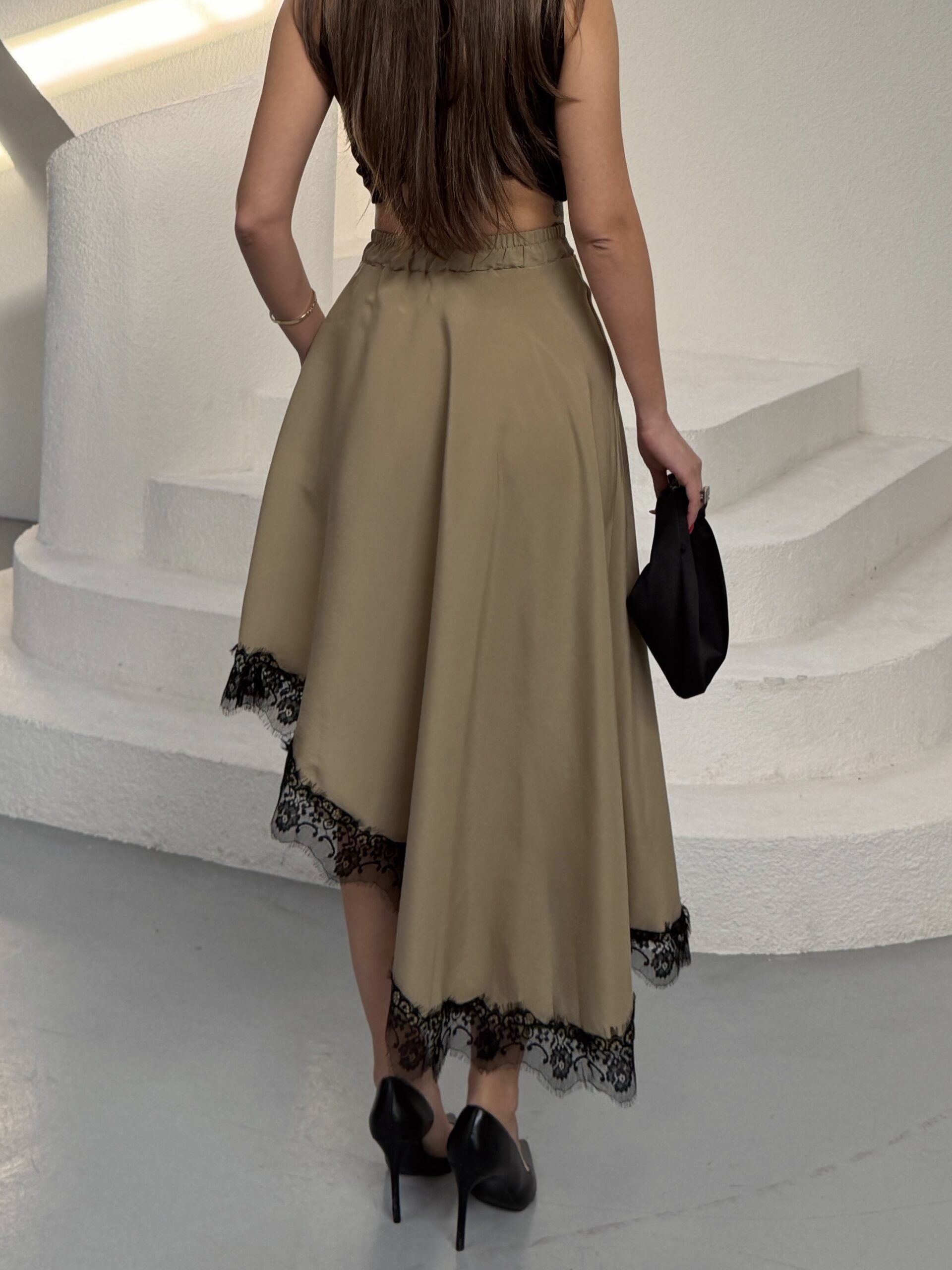 Eteği Dantelli Modal Asimetrik Etek