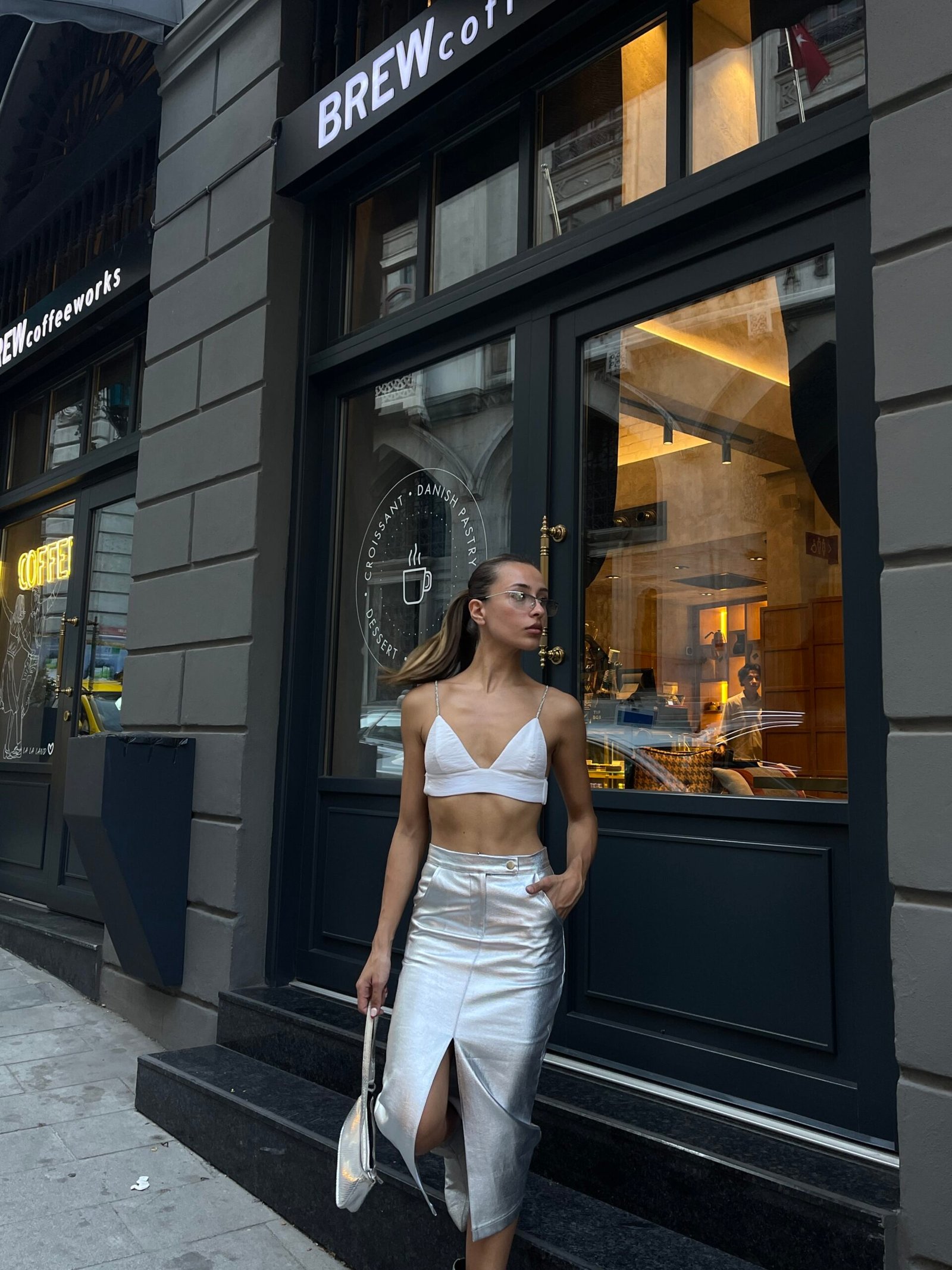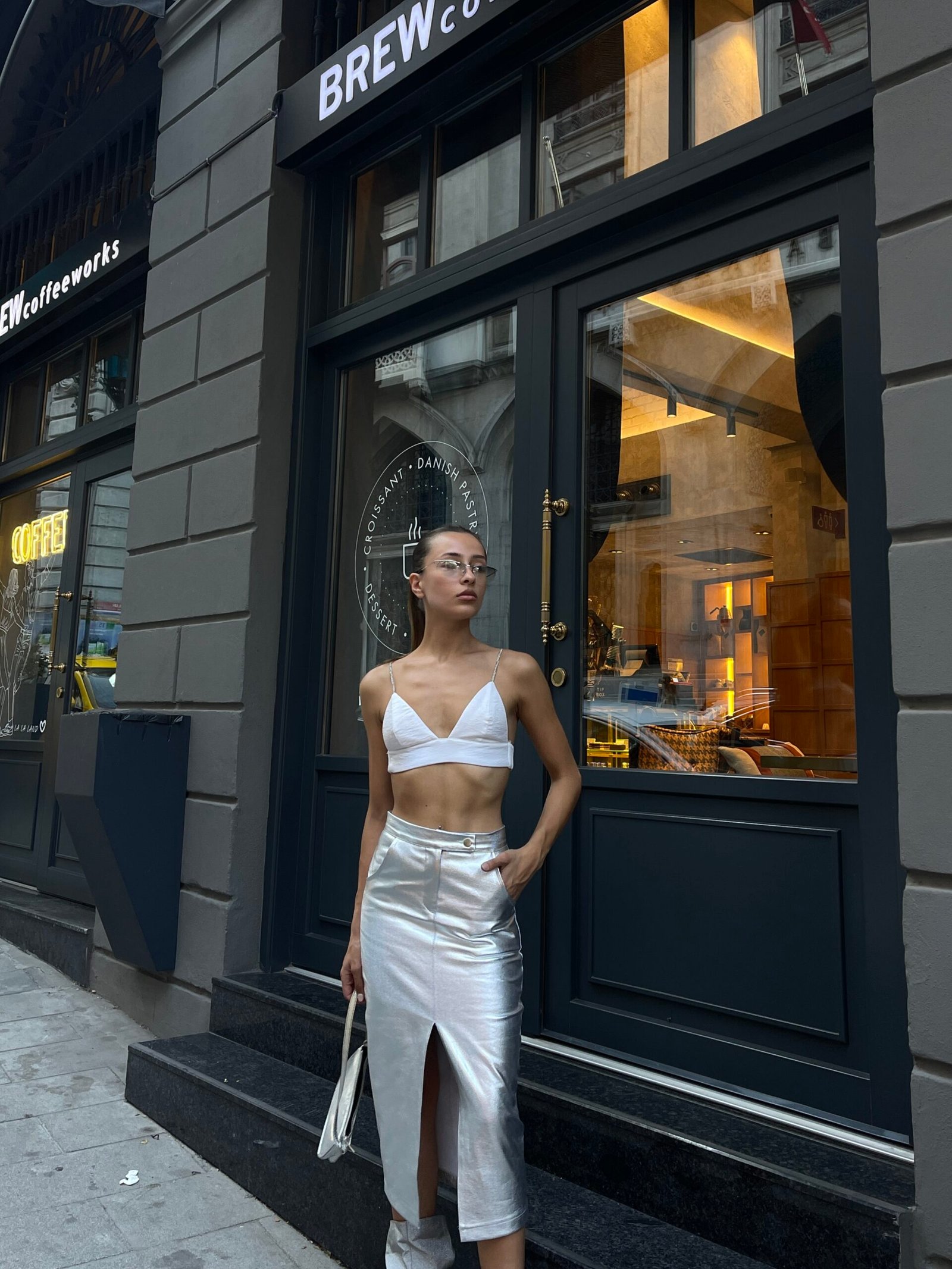 Bu önden yırtmaçlı gold varak etek, mağazalarınıza parıltılı ve iddialı bir seçenek sunar. Parlak gold varak detayı, eteğe çarpıcı bir görünüm kazandırırken; önden yırtmaç detayı, zarif bir dokunuşla şıklığı tamamlar. Bu etek, özel etkinliklerden gece davetlerine kadar geniş bir kullanım alanına sahip olup, dikkat çekmek isteyen müşterileriniz için ideal bir parçadır.