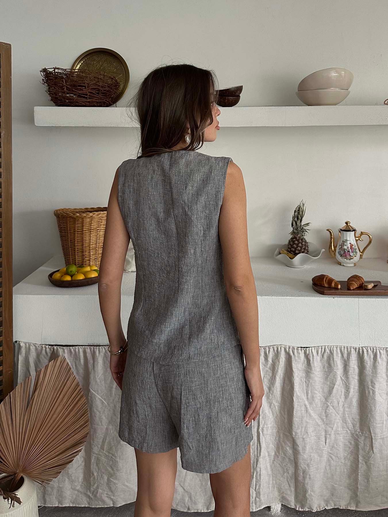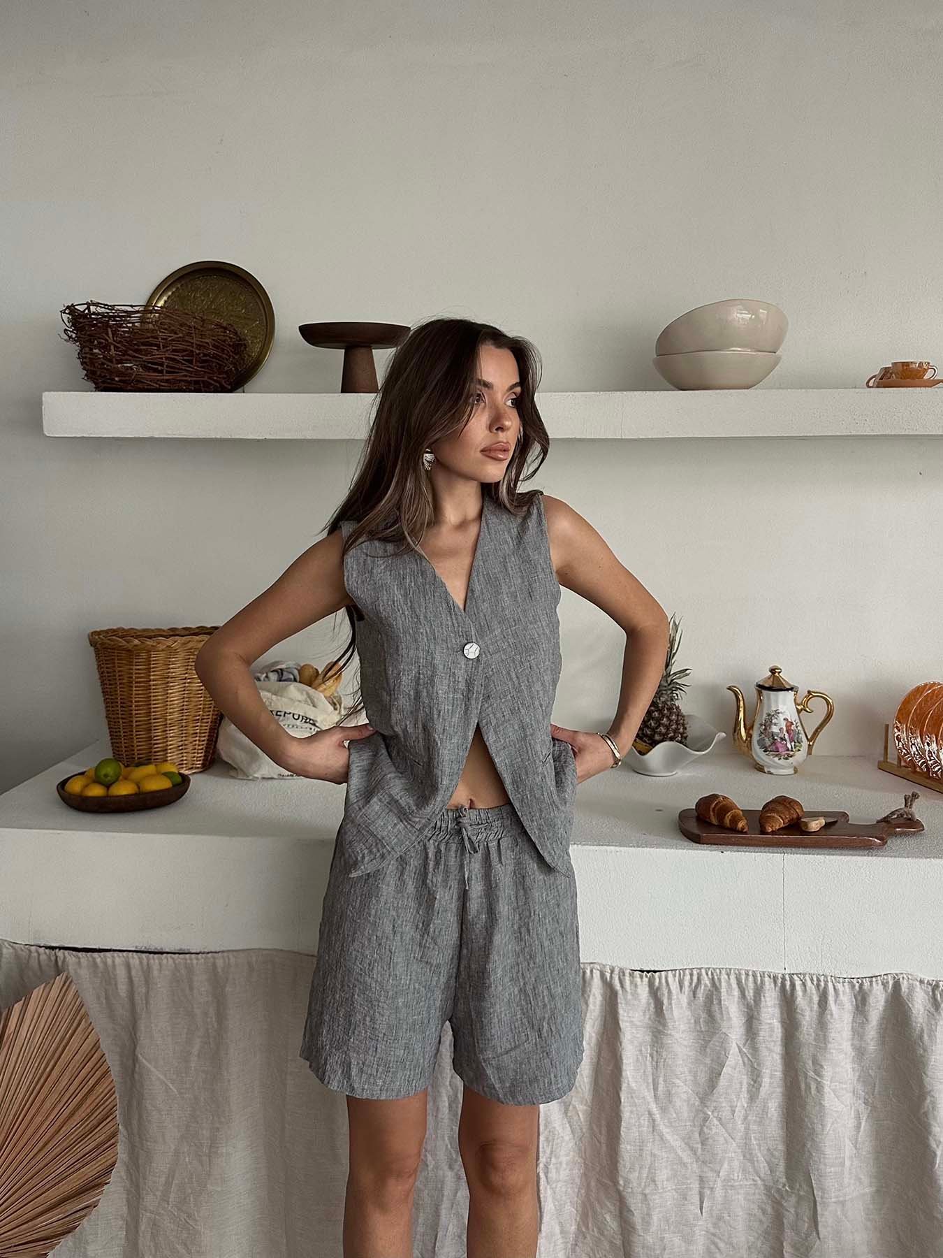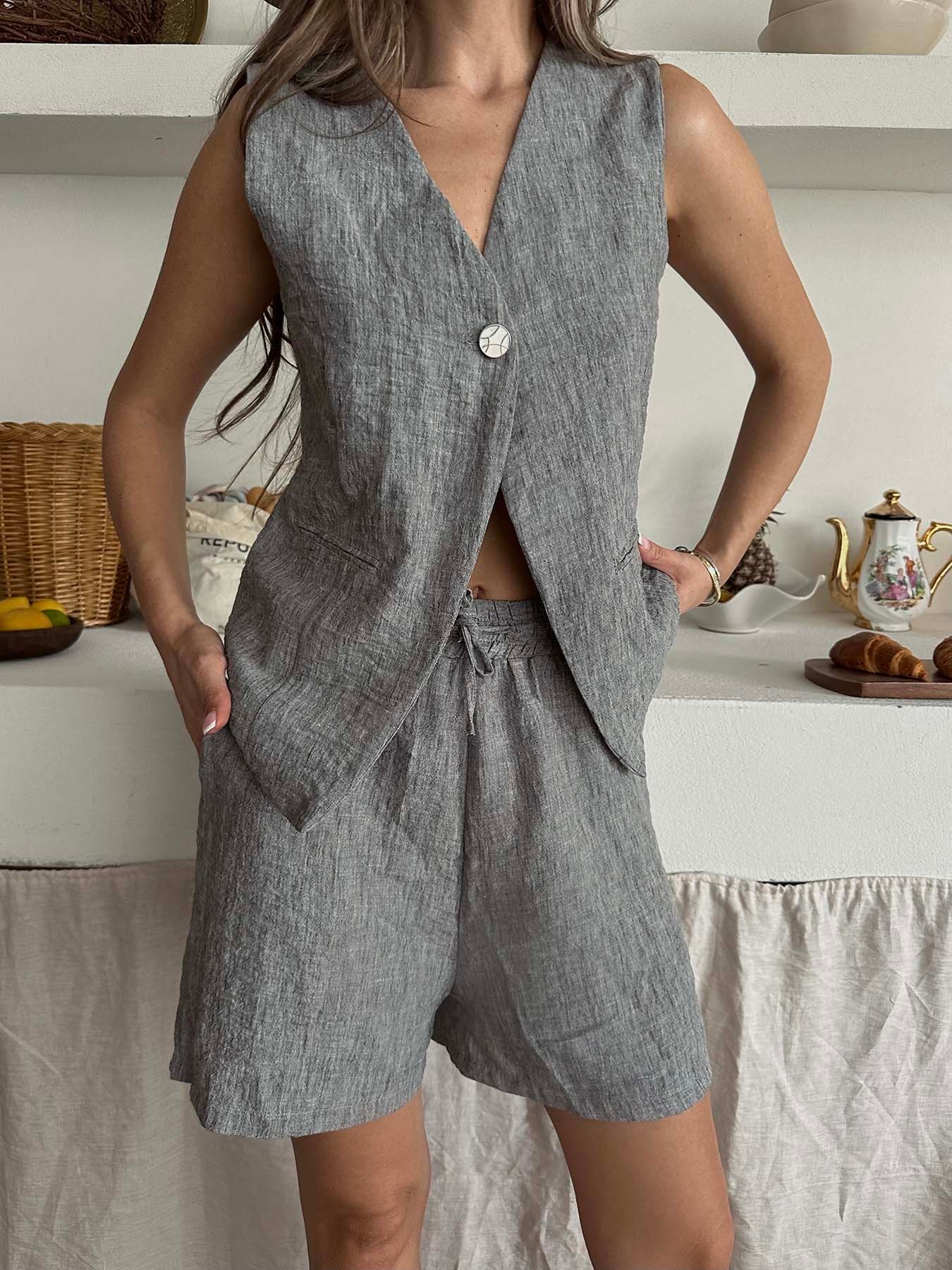 Tek Düğme Yelekli Şort Takım